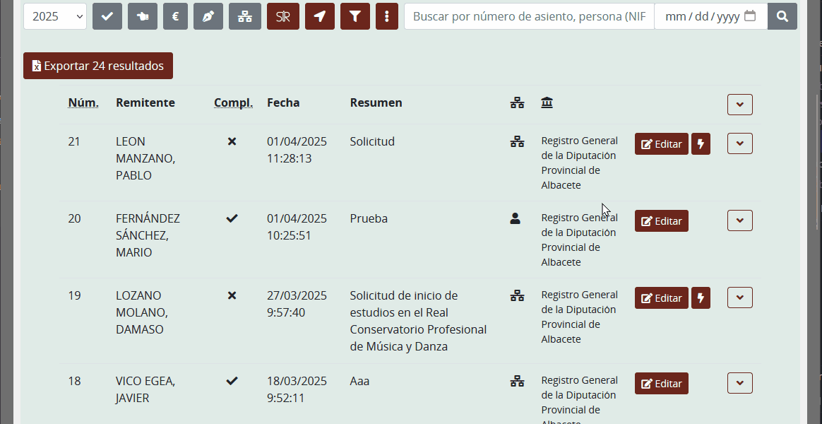 En el buscador general, si se busca por un número entero y este número no coincide con un número de registro, se buscará, entre otros, también por número de instancia.